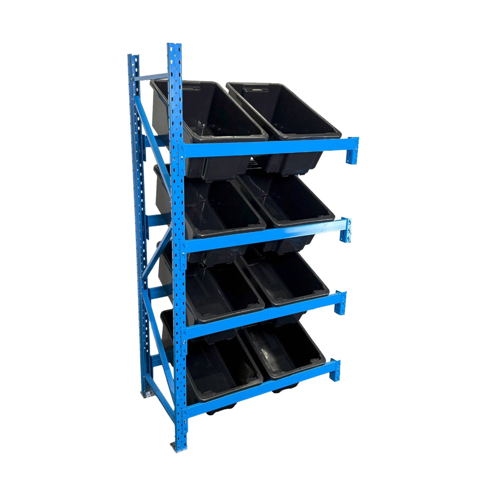 Package Includes: 1 x frames assembled, 8 x beams, 16 x 52 Litre Stack and Nest Crates and all hardware for assembly